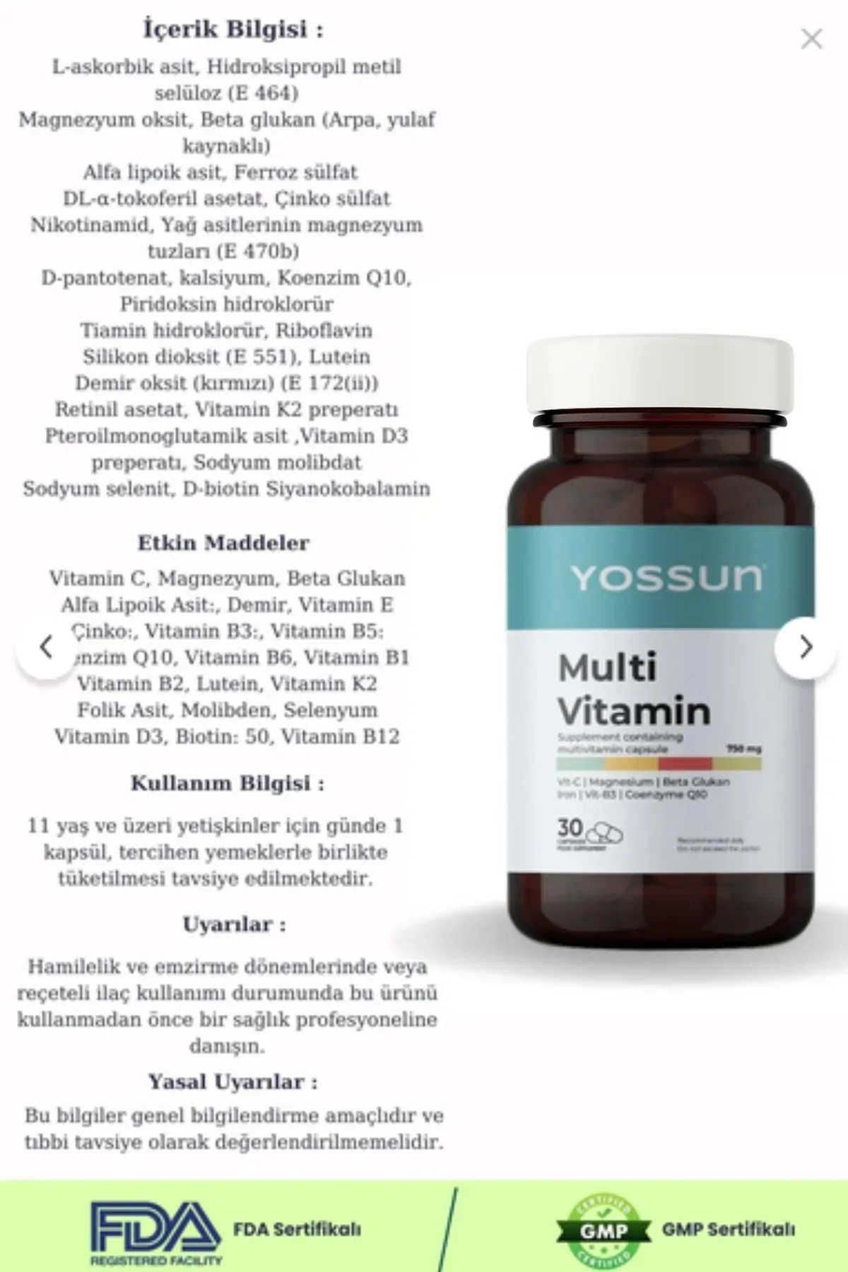 Anasayfa » Gıda Takviyesi Vitaminler » Yossun Multivitamin